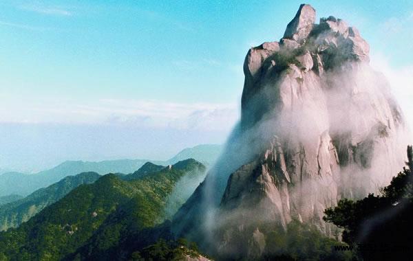 天柱山,亦稱“皖山”或“潛山”,在潛山縣城西北部,漢武帝曾封為南岳。主峰天柱峰,海拔1485米,石骨嶙峋,奇峭險(xiǎn)峻。四周有飛來(lái)峰、天獅峰、蓮花峰、觀音峰、黑虎峰等山峰,危崖羅列,怪石嵯峨;云海瀑布,幽深瑰麗。有三祖寺、馬祖庵、司元洞、渡仙橋、煉丹臺(tái)、石牛洞等勝跡。山中有“天柱云霧”名茶及瑞香木、魚鱗木等多種珍貴植物。為世界地質(zhì)公園、國(guó)家重點(diǎn)風(fēng)景名勝區(qū)。境內(nèi)的天柱山又名皖山、皖公山,因其主峰“一柱擎天”而得名。公元前106年漢武帝南巡時(shí)封其為“南岳”,后為隋文帝詔廢,故被人們尊為“古南岳”。景區(qū)內(nèi)“峰雄、石奇、洞幽、水秀”,兼有豐富的人文景觀,集北山之雄,南山之秀于一身,自然風(fēng)光雄奇靈秀,人文景觀博大精深,堪稱一幅幅絕妙的山水畫卷。1982年被國(guó)務(wù)院公布為全國(guó)首批44家國(guó)家級(jí)重點(diǎn)風(fēng)景區(qū)勝區(qū)之一,2011年5月5日批準(zhǔn)為安徽繼黃山、九華山之后,第三家“AAAAA”級(jí)旅游區(qū)、并獲得國(guó)家森林公園、國(guó)家地質(zhì)公園、中國(guó)自然和文化遺產(chǎn)地等稱號(hào)。