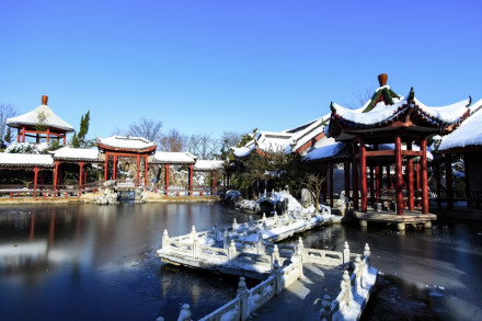 五冠橋位于旅游區(qū)主景觀帶的環(huán)湖路景觀帶上,它是根據(jù)揚(yáng)州瘦西湖五亭橋所建,因橋上建有五個(gè)亭子,便被稱為“五亭橋”。景區(qū)內(nèi)的五亭橋把五個(gè)亭子改成了形狀如冠的形狀,其余均同五亭橋,所以又名“五冠橋”。