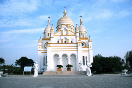 巴黎圣心教堂是典型的折衷主義風(fēng)格的建筑,建于1875年,1877年竣工。在19世紀(jì)中葉至20世紀(jì)初,折衷主義建筑是歐美一些國(guó)家流行的一種建筑風(fēng)格,19世紀(jì)中期以法國(guó)最為典型。這座建筑的穹頂和厚實(shí)的墻身呈現(xiàn)了拜占庭建筑的風(fēng)格,又兼取了羅曼建筑的表現(xiàn)手法。八里河的這座圣心教堂是由阜陽(yáng)建筑設(shè)計(jì)院依據(jù)圖片,按比例建造的。
