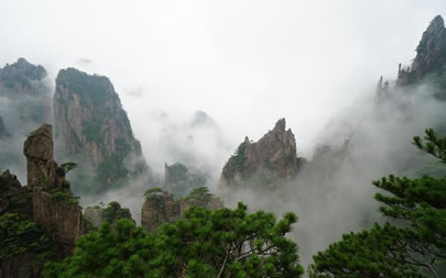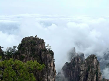 “自古黃山云成!,黃山是云霧之鄉(xiāng),以峰為體,以云為衣,其瑰麗多姿的“云!币悦、勝、奇、幻享譽(yù)古今,尤其是雨雪后的初晴,日出或回落時(shí)的“霞!陛^為壯觀。怪石、奇松、峰林飄浮在云海中,可領(lǐng)略“海到盡頭天是岸,山登絕頂我為峰”的境界。