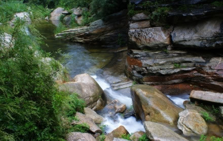神龍谷八石九潭中第一潭,相傳曾經(jīng)是東海龍王九太子靜心思過(guò)之處。它上承天庭之水,下通仙寓瑤池,有神靈之美;精巧靈秀,清澈見(jiàn)底,有天然清秀之美;神龍發(fā)怒,聲似雷鳴,水霧與云霧相連,有險(xiǎn)峻之美;平時(shí)一簾清水飄然而下,有一種神韻之美。