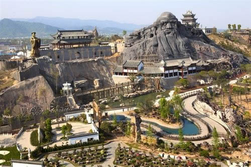 五千年文博園為了弘揚(yáng)道教文化,重金塑造老子像,是目前世界上最大、最高的老子像,高35米,形象設(shè)計(jì)為兩手臂張開(kāi),長(zhǎng)為185米,雙目微閉像是在沉思、輪廓鮮明、從容慈祥、高大挺拔,不僅從形象創(chuàng)意和藝術(shù)處理上都透露出圣人的智慧和雄偉氣勢(shì),生動(dòng)再現(xiàn)了老子一生為了弘揚(yáng)和發(fā)展自己的思想,不畏艱辛,探索治國(guó)安邦的豪情壯志,給后人留下了不朽的思想和精神,與其上雕刻的“老子天下第一”相應(yīng)。