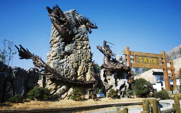 五千年文博園“龍行天下”景點(diǎn)是以兩條近五百米長(zhǎng),由奇石、盆景組成的山水盆景龍和中華漢字龍盤旋而成。采用牌坊、徽派建筑、博古架等古文化元素,運(yùn)用造景、石雕等表現(xiàn)手法,融合了中華漢字文化與盆景藝術(shù)。因?yàn)闈h字是中華民族文化的載體,是中華民族對(duì)世界文化的卓越貢獻(xiàn),它與拼音文字成為世界文字兩大體系。漢字的創(chuàng)造,其對(duì)世界文化的貢獻(xiàn),絕不亞于中國(guó)的四大發(fā)明。而盆景起源于中國(guó),已有一千多年的歷史,在世界藝術(shù)之林中,它是富有自然情趣的東方藝術(shù)精品之一,也是我國(guó)獨(dú)特的傳統(tǒng)園林藝術(shù)之一。