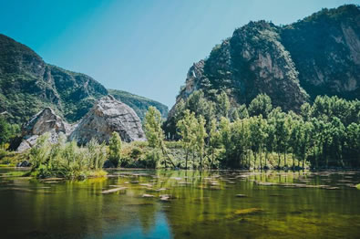 燕山天池還有著有“高峽平湖”之美譽。它坐落在白河堡火山沉積盆地之上,四周山勢起伏,水面浩淼,林帶環(huán)繞,環(huán)境靜謐,總庫容1億立方米,面積500萬平方米,擔(dān)負著為密云水庫、官廳水庫、十三陵水庫補水和調(diào)節(jié)的作用,其中為密云水庫補水過程中蜿蜒曲折流經(jīng)地質(zhì)公園30公里,造就了公園“片片桑田如畫,兩岸丹青難繪”的壯麗景觀。