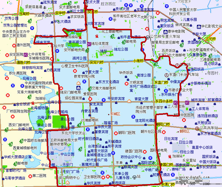 東直門街道 面積2.2平方千米,人口46017,政府駐工人體育館社區(qū)新中街66號,下轄10個社區(qū)