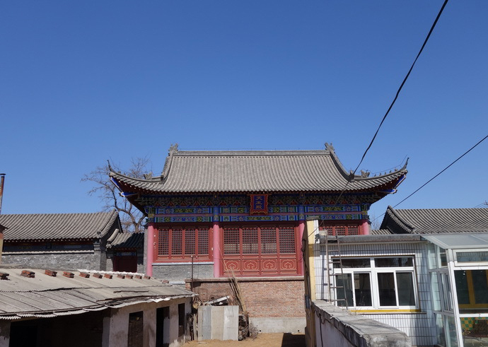 沿村娘娘廟 沿村娘娘廟始建于明代,清代中期重修,2011年在拆除村辦企業(yè)大棚后顯露出來。依地勢坐南朝北。原為四合式,由于時(shí)代的變遷,周圍建筑已不存,現(xiàn)僅存前、后兩進(jìn)殿宇,前殿為硬山筒瓦卷棚頂,前后出廊;后殿為硬山筒瓦大式,前出廊。兩進(jìn)殿均為石望板頂,廊心墻處為軟心,梁檁彩繪及壁畫仍清晰可見。