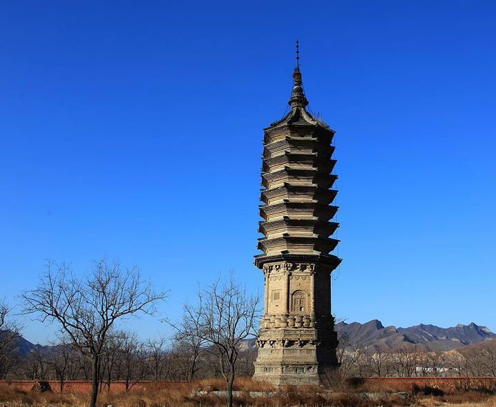 豆各莊塔 豆各莊塔位于青龍湖鎮(zhèn)豆各莊村,為房山區(qū)文物保護(hù)單位。始建于唐代。坐西朝東,是一座八角密檐式磚塔,通高約15米。塔身上有磚雕。八面磚雕輪、螺、傘、蓋、花、罐、魚、長的佛八寶圖像。塔基上端為三層磚雕仰蓮。東面辟券門,其它各面分別開設(shè)磚雕的假門、假窗。塔身之上是八層仿樓閣密檐。第一層檐下裝飾斗拱。其它每兩層榴之間做成仰、覆蓮瓣。檐子為疊澀式。塔剎由下大上小的兩層磚雕蓮花組成。這座塔的特點是采用蓮花裝飾的成分多:整個塔由基座上的三層仰蓮?fù)衅,門窗層以上每兩層檐中央又裝飾上下對稱的仰覆蓮瓣,共有八層;再用蓮花封頂。 風(fēng)景名勝