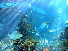 每天上午10:00和下午1:30(周二除外),在海底環(huán)游入口處有潛水喂食表演。潛水員身背氧氣瓶攜帶各種食料下水,邊喂食邊向游客介紹不同品種的魚類,最吸引游客的是身型扁平的魟魚(俗稱魔鬼魚)。魟魚主要以小型無脊椎或浮游動(dòng)物為食,大部分時(shí)間性情溫和,所以潛水員可以用手把食物送進(jìn)魚嘴里。但魟魚的魚尾生有毒刺,如果它感覺受到威脅會(huì)以毒刺自衛(wèi)(有人被魟魚刺死的事件報(bào)告),所以這項(xiàng)表演也具有一定的危險(xiǎn)性。
