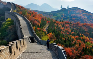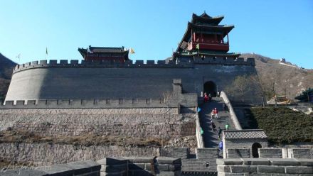 居庸關(guān)長城建在一條長達15公里的山谷間,兩旁山巒重疊,樹木蔥郁,山花爛漫,景色瑰麗,遠在800年前的金代,就被列為燕京八景之一,稱為“居庸疊翠”。居庸關(guān)是從北面進入北京的門戶,有“一夫當關(guān),萬夫莫開”的氣勢。居庸關(guān)的中心還保存著一個雕刻精美的漢白玉石臺“云臺”。在元朝時,臺上建有三座石塔,于元末明初被毀。三塔被毀后,在此臺上又建一院“泰安寺”,此寺于清康熙年間被火焚毀,只剩下這個基座——云臺。云臺的券門內(nèi),石壁上雕刻有四大天王像,姿態(tài)傳神;還刻有梵文、藏文、蒙文、維吾爾文、西夏文、漢文六種文字組成的佛經(jīng)。
