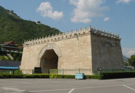 現(xiàn)存的云臺,平面呈長方形,底部東西長近27公尺,南北深17公尺半;頂部東丙長24公尺,南北深近15公尺。臺頂四周安設(shè)石護欄和排水龍頭。臺座中間開一券門,寬6公尺余,高7公尺余,為五邊折角尤拱券,可通車馬。券門和券洞上有元代精致的石刻,是研究佛典和古文字的珍貴資料。在距北京市區(qū)50余公里外的昌平區(qū)境內(nèi)。居庸關(guān)得名,始自秦代,相傳秦始皇修筑長城時,將囚犯、士卒和強征來的民夫徙居于此,取"徙居庸徒"之意。漢代沿稱居庸關(guān),三國時代名西關(guān),北齊時改納款關(guān),唐代有居庸關(guān)、薊門關(guān)、軍都關(guān)等名稱。