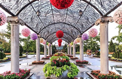 中國(guó)園林占地450平方米,采用我國(guó)南方傳統(tǒng)建筑風(fēng)格的白墻、灰瓦和花窗,極富江南韻味,古老的月亮門勾起您的懷舊情思。進(jìn)入花園,曲徑通幽的小道蜿蜒伸向遠(yuǎn)方,滿園的月季花鮮艷奪目。