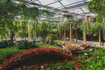 世界花卉大觀園景觀由七大溫室和十五個(gè)花園廣場(chǎng)組成。溫室內(nèi)全部采用電腦控制的通風(fēng)、加濕、恒溫、滴灌等新技術(shù),營(yíng)造出適宜植物生長(zhǎng)的環(huán)境,各溫室內(nèi)的植物千奇百怪、花團(tuán)錦簇。熱帶植物館中有數(shù)百年的佛肚樹、重陽(yáng)木、古榕樹等喬木1800余種;沙生植物溫室有上百種仙人掌、仙人球;精品花卉廳有生動(dòng)風(fēng)趣的植物生肖園、精品盆景園,電子觸摸屏為您介紹豐富多彩的各國(guó)花卉知識(shí);頗具農(nóng)家田園風(fēng)光的蔬菜瓜果園中有重達(dá)150公斤的巨人南瓜;在茗賞百花廳可以賞花品茶;還專門為游人提供了直接參與花卉組培技術(shù)的活動(dòng)空間和各類娛樂(lè)項(xiàng)目。室外景觀有各具特色的百花廣場(chǎng)、凡爾賽花園、水花園、夜花園、花之廣場(chǎng)、花之谷、牡丹園等園中之園;頗具異國(guó)風(fēng)情的荷蘭、俄羅斯、德國(guó)、奧地利花園讓世界花卉文化和精美的園林藝術(shù)在這里交相輝映,巧妙和諧地融合在一起。