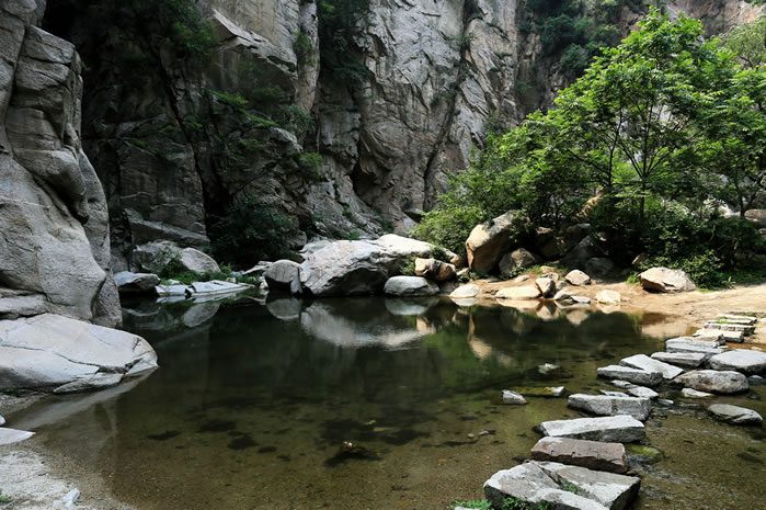 雙秀峰自然風(fēng)景區(qū) 雙秀峰自然風(fēng)景區(qū)位于大莊科鄉(xiāng)大青溝村東,鐵爐村南1.5公里,鄉(xiāng)駐地南7.8公里處。南與昌平接壤,北有鐵爐村,西沙梁村,東有大秦鐵路鐵爐火車站,西為連綿群山。雙峰并峙,直插云霄,中有一條石縫,故名。海拔672米,整個(gè)山峰大部分為褚紅色粗糙花崗巖,山西北側(cè)有匯泉而成的溪流,是碓石口河(東沙河)發(fā)源地。