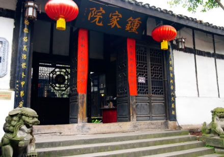 鐘家院位于磁器口黃桷坪一巷17號附1號,占地面積738.4平方米(含院壩),建筑面積537.6平方米,是歷史建筑和不可移動文物。鐘家院建成于清光緒十六年(1890年),主人是在磁器口長大的鐘云亭先生。整個院子有北方四合院韻味,又有南方民居精致典雅的特色。院內(nèi)展示有明清古床、花好月圓桌等古代文物,是清代民居的重要展示場所。