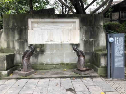 為紀念抗戰(zhàn)陣亡的將士而塑的大賣國賊汪精衛(wèi)、陳璧君夫婦的跪像。民國二十九年(1940年),跪像由馮玉祥主持、王臨乙設計創(chuàng)作,因經(jīng)費原因,原跪像為青石雕刻,20世紀50年代修公路被深埋地下。現(xiàn)跪像為生鐵鑄造,系2002年重新制作。
