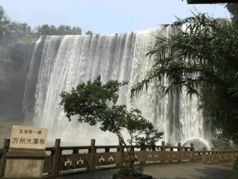 萬(wàn)州大瀑布又稱青龍瀑布、甘寧瀑布。位于核心景區(qū)青龍河中段,寬151米,高64.5米,單掛面積9739.5平方米,為迄今發(fā)現(xiàn)的亞洲面積最大的單掛瀑布。瀑布長(zhǎng)年浩浩蕩蕩,凌空飛瀉,其勢(shì)如千軍萬(wàn)馬橫空出世,氣吞萬(wàn)象。在陽(yáng)光的照射下,瀑珠時(shí)時(shí)生輝,瀑霧處處成虹。隨著水勢(shì)大小、陽(yáng)光強(qiáng)弱、觀賞角度的變換,彩虹的位置、形態(tài)、色澤還會(huì)發(fā)生奇異的變化,形成“飛瀑斜虹”“臥波長(zhǎng)虹”“雙曲彩虹”“跨岸飛虹”“水簾霓虹”“飲洞巨虹”等美景。