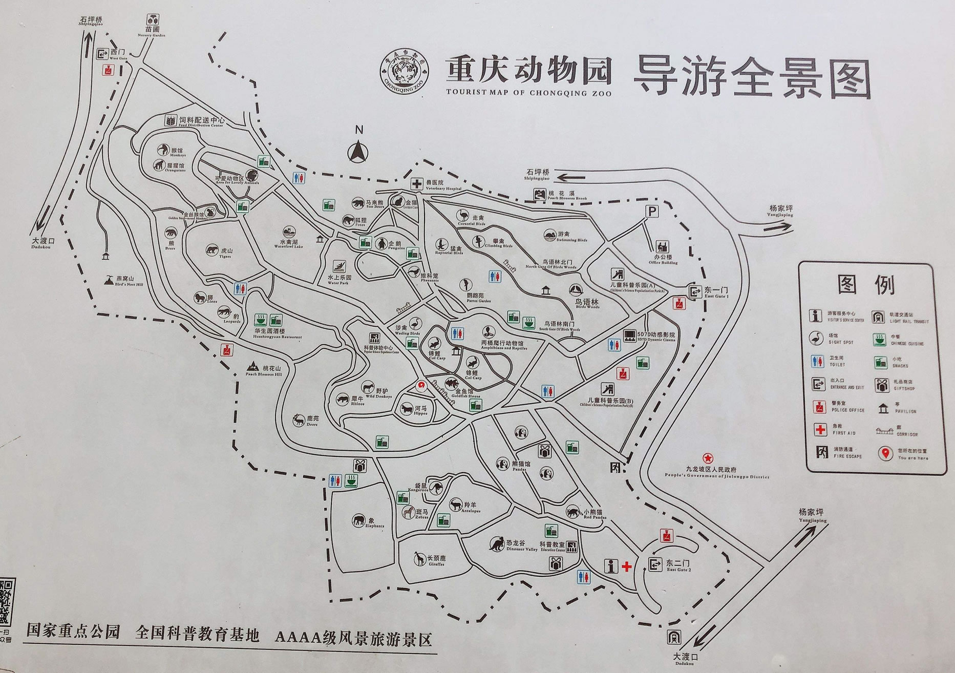重慶動(dòng)物園設(shè)有魚類及兩棲爬行區(qū)、鳥禽展示區(qū)、草食動(dòng)物區(qū)、猛獸區(qū)、靈長類區(qū)、科普教育區(qū)、兒童活動(dòng)區(qū)、臨溪休閑區(qū)、中心休息游覽區(qū)、安靜休息區(qū)10個(gè)功能分區(qū),公園中建有兒童樂園、旱冰場、露天舞臺(tái)、閱覽室、餐館、茶園等;飼養(yǎng)動(dòng)物260余種,4000余只(頭),其中珍稀動(dòng)物有:大熊貓、華南虎、金絲猴、白鐵葉猴、扭角羊、角馬和食火雞等。
