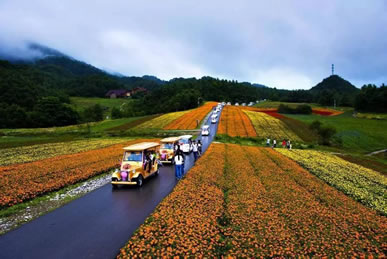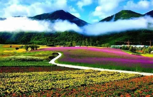 云中花海景區(qū)由1500畝構(gòu)圖花卉區(qū)、3000畝綴花草坪區(qū)、3000畝疏林草地鮮花區(qū)、2500畝有機(jī)生態(tài)農(nóng)業(yè)花海觀光區(qū)和休閑生活?yuàn)蕵?lè)區(qū)構(gòu)成,是世界上高海拔地區(qū)最大、最美的花海景觀,面積是日本北海道花海的7倍。
