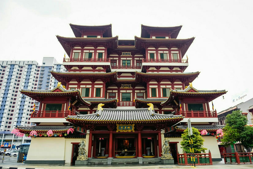 新加坡佛牙寺 新加坡佛牙寺坐落于牛車水碩莪街,樓高五層,全按中國(guó)唐代佛寺風(fēng)格建筑而成。第一層是山門、鐘樓、鼓樓、觀音殿、百龍殿。第二層是阿蘭若藏經(jīng)閣及展覽廳、文殊殿,夾層樓是蓮芯茶坊、地藏殿、法堂、戒光堂、諸山長(zhǎng)老德像紀(jì)念館。第三層是普賢殿、龍華院—佛教文物館。第四層是靈光殿、佛牙舍利金塔。第五層頂樓有萬佛閣、毗盧遮那大光明經(jīng)咒轉(zhuǎn)經(jīng)輪藏、萬福光明燈和胡姬花園。