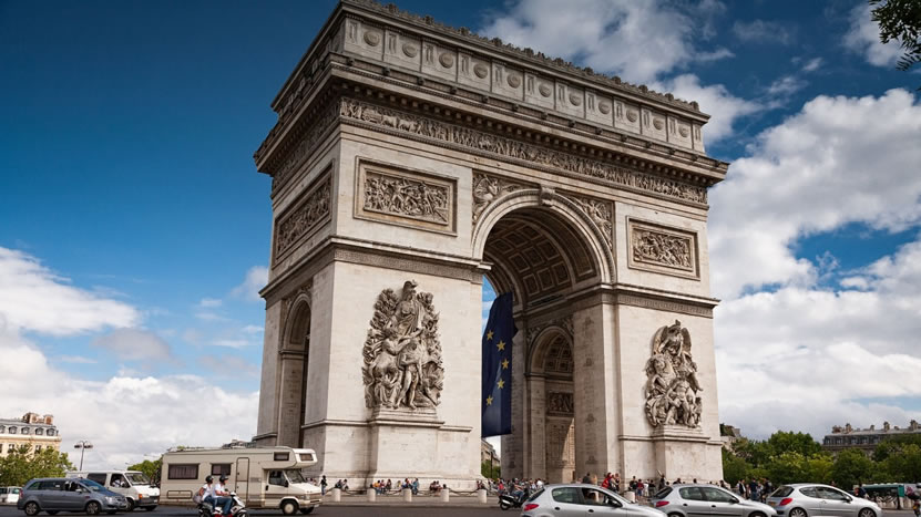 巴黎凱旋門 凱旋門(法語:L'Arc de Triomphe),位于法蘭西共和國首都巴黎市中心城區(qū)香榭麗舍大街,地處巴黎戴高樂星形廣場中央,是為頌揚奧斯特里茨戰(zhàn)役勝利,由法蘭西第一帝國皇帝拿破侖主持修建的一座紀(jì)念性建筑,是法國國家象征之一、法國四大代表建筑之一、巴黎市地標(biāo)紀(jì)念碑。 凱旋門正如其名,是一座迎接外出征戰(zhàn)的軍隊凱旋的大門。它是現(xiàn)今世界上最大的一座圓拱門,位于巴黎市中心戴高樂廣場中央的環(huán)島上面。這座廣場也是配合雄獅凱旋門而修建的,因為凱旋門建成后,給交通帶來了不便,于是就在19世紀(jì)中葉,環(huán)繞凱旋門一周修建了一個圓形廣場及12條道路,每條道路都有40~80米寬,呈放射狀,就像明星發(fā)出的燦爛光芒,因此這個廣場又叫明星廣場。凱旋門也稱為“星門”。