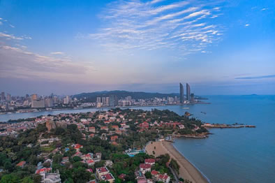 鼓浪嶼位于福建省廈門市思明區(qū)鼓浪嶼街道,面積1.88平方公里,與廈門島隔海相望,至高點為日光巖,與廈門島上的廈門世茂海峽大廈、廈門大學(xué)等隔海相望。