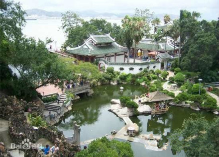 坐落在鼓浪嶼港仔后,建于民國二年(1913年),主人林永嘉,又名叔臧,園名即以他的名字諧音而命名。甲午戰(zhàn)爭清廷失敗,翌年割臺灣給日本,林維源及其子叔臧不愿當(dāng)亡國奴,遷到鼓浪嶼居住。其后,叔臧建了這座花園。菽莊花園總面積20328平方米,其中水域3352平方米,建筑物2451平方米。