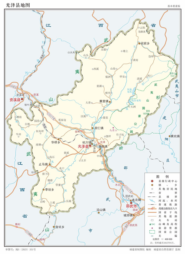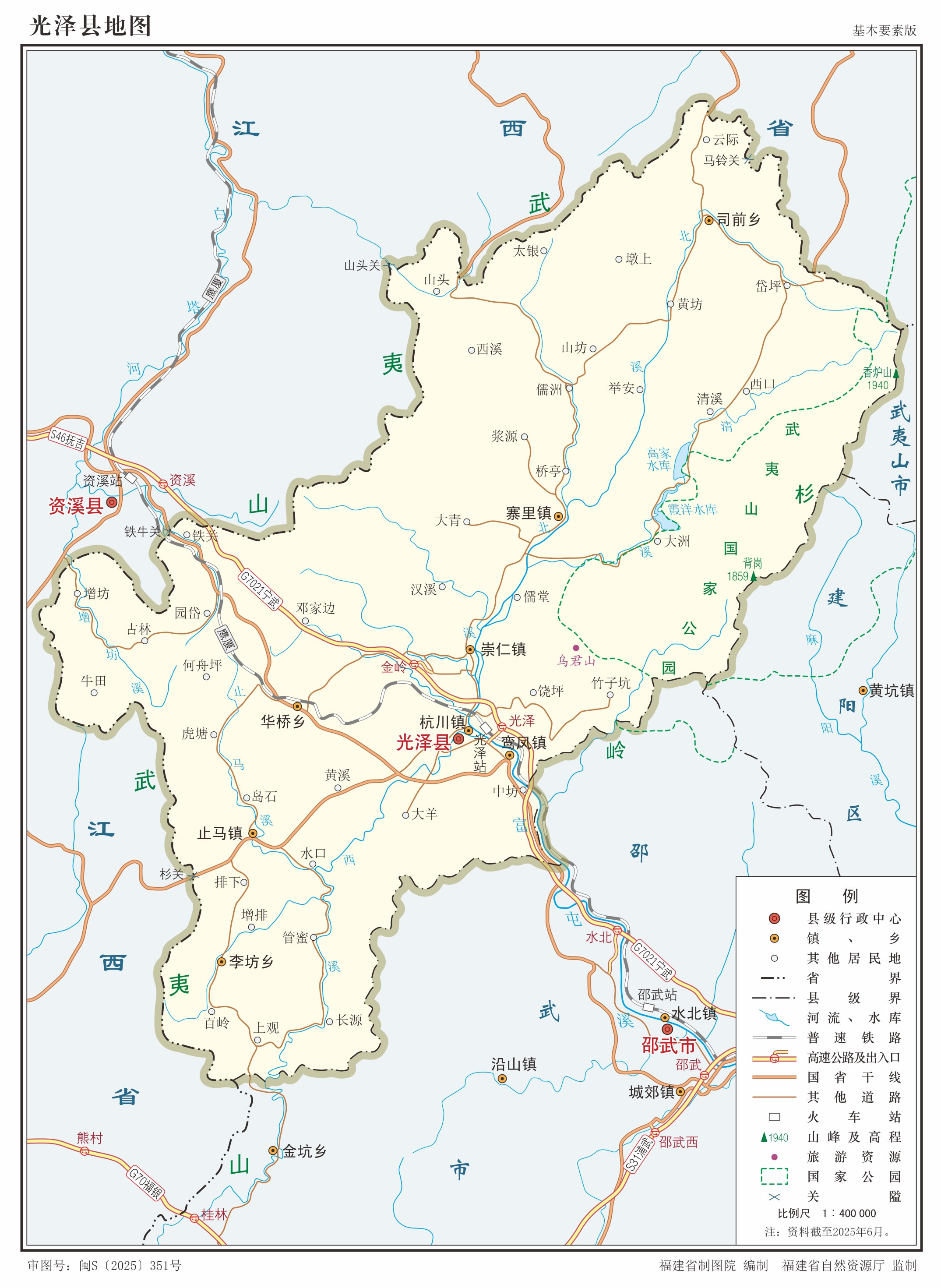 光澤縣位于福建省西北部,武夷山西南麓,與閩贛兩省的武夷山、邵武、建陽、黎川、資溪、貴溪、鉛山七縣市交界,是鷹廈鐵路入閩門戶,316國道橫貫縣境,縣城距武夷山機場僅百公里。人口16.02萬,總面積2232.4平方千米。全縣下轄3個鎮(zhèn)、5個鄉(xiāng),90個村(居)委會。