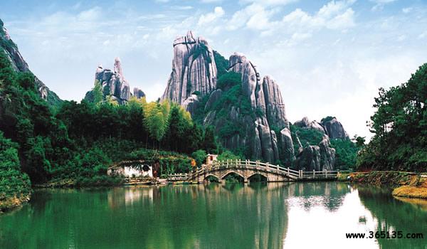 國家重點風景名勝區(qū)、世界地質(zhì)公園一一太姥山,位于閩浙邊界的福建省福鼎市境內(nèi),北鄰浙江溫州118公里,南距福建福州200公里,雄峙于東海之濱,山海相依、傲岸秀拔,以 “山海大觀”稱奇。傳說東海諸仙常年聚會于此,故有“海上仙都”的美譽。它北望浙江雁蕩、西眺福建武夷,三者成鼎足之勢,閩人稱武夷、太姥為雙絕,浙人視雁蕩、太姥為昆仲, 構(gòu)成閩越三大名山。 太姥山是一處以花崗巖峰林巖洞為特色,融山、海、川、島和人文景觀于一體的風景旅游勝地,觀賞面積92.02平方公里,保護面積200平方公里,擁有太姥山岳、九鯉溪瀑、,幜袓u、晴川海濱四大景區(qū)和瑞云畬寨、冷城古堡、翠郊古民居三處獨立景點。旅游資源有武夷、雁蕩山水之秀麗;有黃山、泰山云霧之奇幻;有嶗山、三亞海景沙情;有普陀、武當佛蹤道跡。游人就近便可登山、探洞、戲水、游島、漂流……尋覓古剎幽遠,領(lǐng)略畬寨風情,一舉多得。