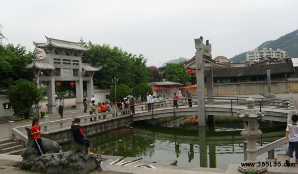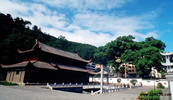 南溪書院:在尤溪縣城南的公山之麓,原為邑人鄭義齋館舍。北宋宣和五年(1123年),朱熹之父朱松任尤溪縣尉,去官后寓居于此。南宋建炎四年(1130年),朱熹在此誕生。朱熹逝世后,縣令李修于嘉熙元年(1237年)捐資在此修建文公祠、韋齋祠、半畝方塘和尊道堂等建筑,祀朱家父子。寶元年(1253年),宋理宗賜額“南溪書院”。元至正元年(1341年),分建二祠,明清后屢有修繕擴(kuò)建。書院古樸莊嚴(yán),現(xiàn)建筑面積1000平方米,有韋齋祠、觀書第、毓秀坊、毓秀亭等建筑。正堂當(dāng)中立朱熹石膏塑像,兩旁是朱子手書板聯(lián)四幅:“讀書起家之本 和順齊家之本 勤儉治家之本 循理保家之本”。四壁高懸其上溯八代列祖列宗畫像。書院內(nèi)的方塘,為朱熹幼年讀書處。朱熹《觀書有感》詩(shī)曰:“半畝方塘一鑒開,天光云影共徘徊;問渠那得清如許,為有源頭活水來”。其中的“半畝方塘”即指此處。明弘治十一年(1498年),知縣方溥主持,把半畝方塘擴(kuò)大浚深,并建亭于塘上,通以石橋,取名“活水亭”,今皆修復(fù)。