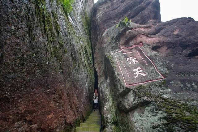 著名旅行家徐霞客于明崇禎三年(1630年)記敘了這一奇觀:“上辟山巔,遠(yuǎn)透山北,中不能容肩,蓋之乃受,累級斜上,直貫其中。余所見‘一線天’數(shù)處,武夷、黃山、浮蓋,未曾見若此之大而逼、遠(yuǎn)而整者”。每當(dāng)午時(shí),晴空麗日,陽光直射,翹首仰望,只見天光一線,壯麗無比。