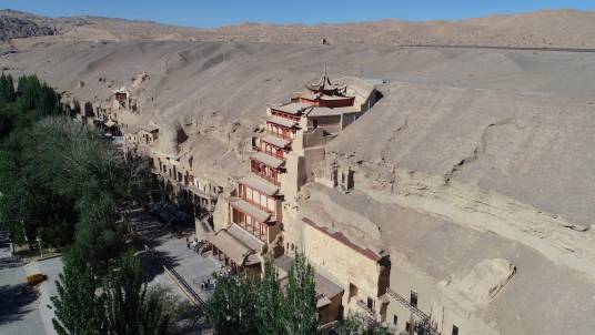 敦煌位于甘肅省的西部,從自然地理的位置上說,正處在河西走廊的西部盡頭處。這里南接青海,西連新疆,自漢代以來一直就是中西交通的樞紐。它的開鑿從十六國時期至元代,前后延續(xù)約1000年,這在中國石窟中絕無僅有。它既是中國古代文明的一個璀璨的藝術(shù)寶庫,也是古代絲綢之路上曾經(jīng)發(fā)生過的不同文明之間對話和交流的重要見證。莫高窟現(xiàn)有洞窟735個,保存壁畫4.5萬多平方米,彩塑2400余尊,唐宋木構(gòu)窟檐5座,是中國石窟藝術(shù)發(fā)展演變的一個縮影,在石窟藝術(shù)中享有崇高的歷史地位?邇(nèi)繪、塑佛像及佛典內(nèi)容,為佛徒修行、觀像、禮拜處所。敦煌石窟是建筑、雕塑、壁畫三者結(jié)合的立體藝術(shù)。洞窟分南北兩區(qū):南區(qū)492個洞窟是莫高窟禮佛活動的場所,北區(qū)243個洞窟主要是僧人和工匠的居住地,內(nèi)有修行和生活設(shè)施土炕坑、煙道、壁龕、燈臺等,但多無彩塑和壁畫。