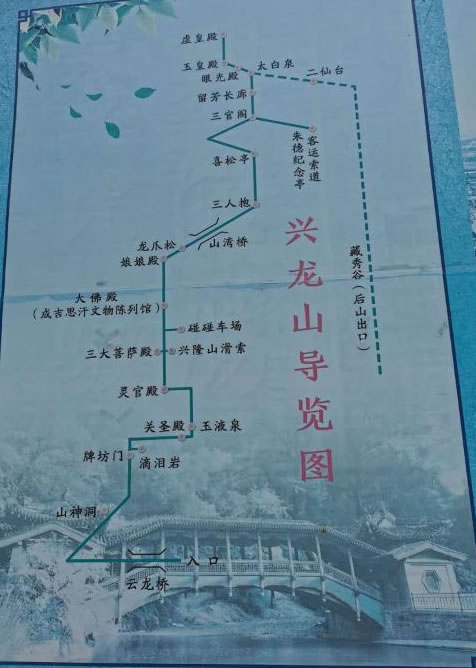 唐宋時(shí),興隆山神殿甚多,香火旺盛,稱“洞天福地”。清代時(shí),這里廟宇樓閣,或依山面壁,或深藏密林,畫(huà)棟雕梁,飛檐紅柱,甚為壯觀。后大多被毀,僅存清代所建飛跨興隆峽的云龍橋(臥橋)一座。清康熙年間取復(fù)興之意,改名“興隆山”。本世紀(jì)五十年代,全山亭臺(tái)樓閣以及廟宇達(dá)70多處,景點(diǎn)24處,成為佛、道勝地。
