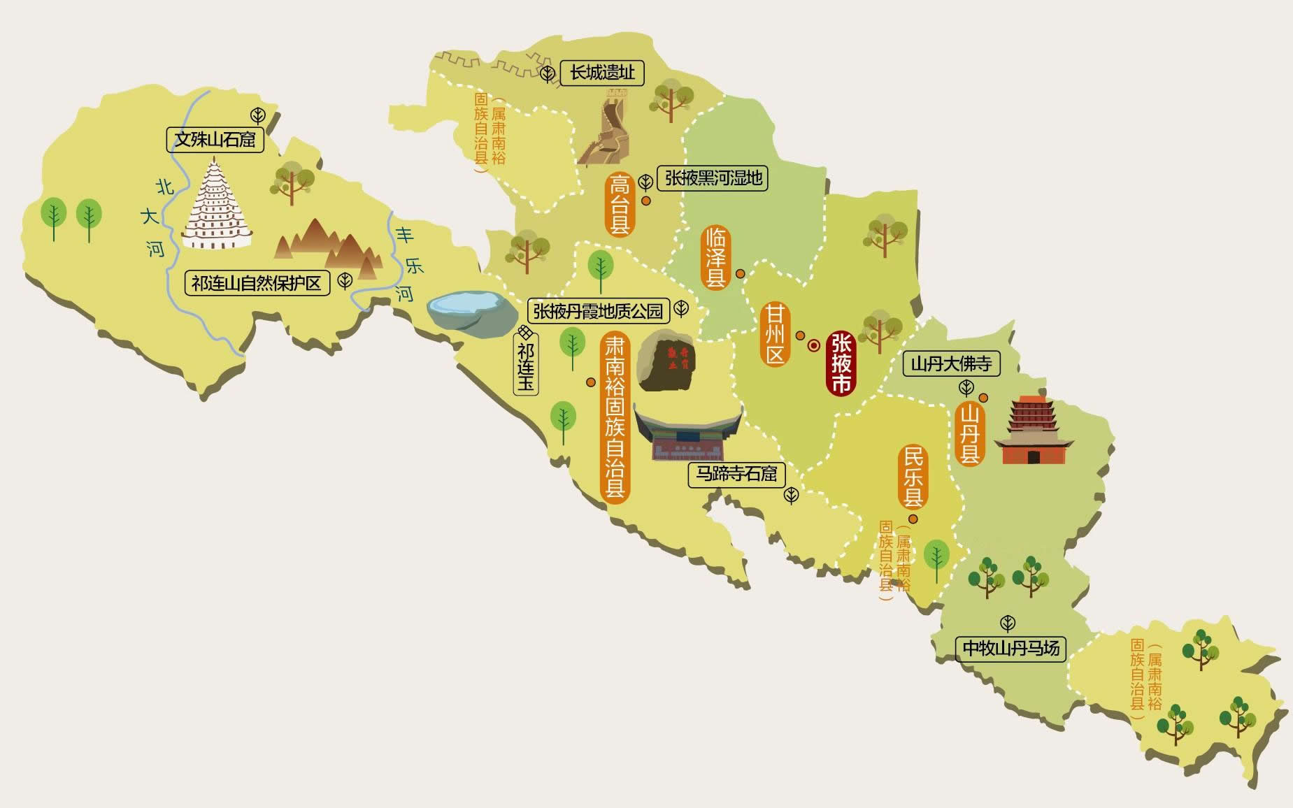 張掖市轄1個(gè)市轄區(qū)、5個(gè)縣: