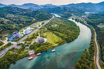 四周群山環(huán)抱,層巒疊翠,蜿蜒曲折的流溪河像一條飄帶縱貫其間。這里遍種梅、李、荔枝、松、柏、玉蘭等,到處綠竹成林,風景秀麗,四季如春。加上樓臺、小亭、曲廊,參差錯落,臨溪倒影,將區(qū)內環(huán)境點綴得格外幽雅,給人以恬靜的美感。