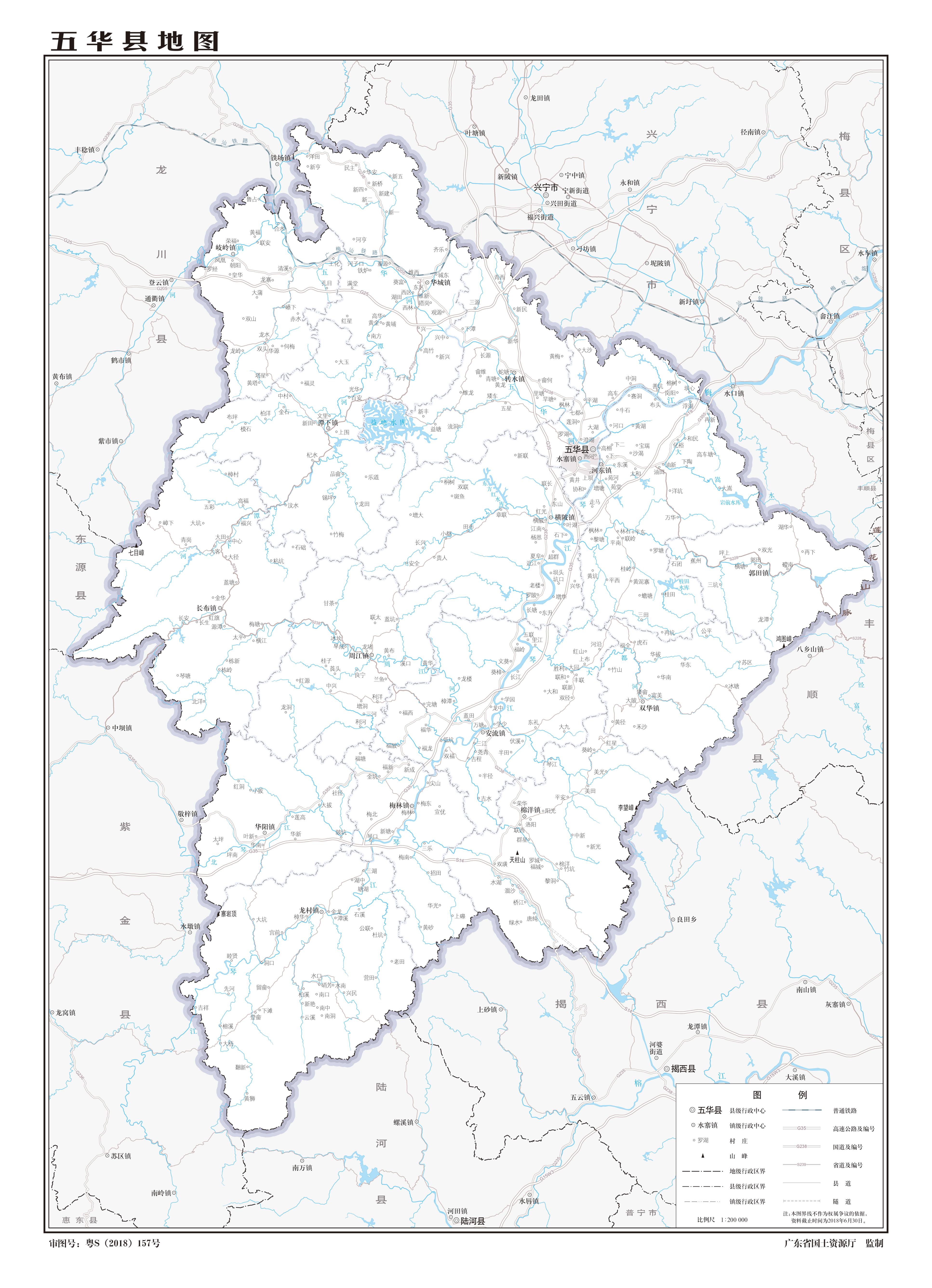 位置 五華縣位于廣東省東部,韓江上游,介于北緯23°23′~24°12′,東經(jīng)115°18′~116°02′?h境東起郭田照月嶺,西止長(zhǎng)布雞心石,南起登畬香爐山,北止新橋洋塘尾。東西寬71.59公里,南北長(zhǎng)87.99公里,總面積3226.1平方公里?h版圖略呈三角形。東南界豐順、揭西、陸河,西南接?xùn)|源、紫金,西北鄰龍川,東北連興寧。