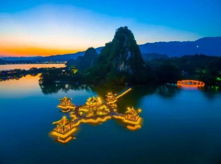以不同的顏色交錯投射到景物上,勾畫出七星巖景區(qū)內(nèi)神秘幽雅的堤岸、小橋,花木,巖山與湖水交相輝映,使夜幕下的七星巖更加絢麗多彩;同時開辟了星湖夜游項目,為廣大市民和游客在夜色中游湖觀光提供了一個美麗的環(huán)境 ,再造出“第二星湖”。增加了許多新的景點,如牌坊文化廣場,每當(dāng)夜幕降臨,霓虹閃耀,游人如鯽,當(dāng)露天音樂噴泉啟動之時,七星巖牌坊廣場更顯得壯觀,每逢周末或節(jié)假日,這里還可以欣賞一臺臺豐富多彩的文藝節(jié)目,真是令人如醉如癡。位于星巖東面的仙女湖,每當(dāng)太陽西下,還可以觀賞到天然奇觀--臥佛吞日。