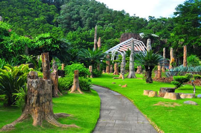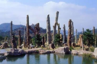 全園分為天上人間景區(qū)、湖區(qū)、廟區(qū)、沙漠植物區(qū)、化石森林景區(qū)和松柏杜鵑景區(qū)等六大景區(qū)。建有別有洞天、兩宜亭、玉帶橋、龍尊塔、聽濤閣、攬勝亭、蝶谷幽蘭等十幾處園林景點(diǎn),并建有獨(dú)具特色的古生物博物館。