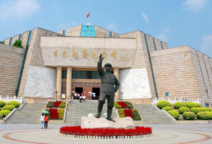 百色起義紀(jì)念園位于百色城東面的后龍山、盤龍山、迎龍山上,是在整合百色起義紀(jì)念館、紅七軍軍部舊址、紅七軍政治部舊址、百色起義紀(jì)念碑、右江民族博物館、紅軍橋、銅鼓樓、南閣亭、兩廣青年友誼園等革命歷史文化資源的基礎(chǔ)上形成的主題性公園,成立于2008年5月,是中央確定的全國12個紅色旅游重點景區(qū)之一“兩江紅旗,百色風(fēng)雷”景區(qū)的核心區(qū)。