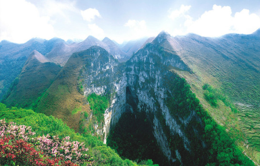 通靈大峽谷:位于靖西縣城東南部32公里的湖潤鎮(zhèn)新靈村,古龍山水源林自然保護(hù)區(qū)的南端,由念八峽、銅靈霞、古勞峽、新靈峽、新橋峽組成,總長10多公里。念八河從古龍山脈緩蜒而下,依次穿越五個峽谷,流入湖潤臺地。每個峽谷內(nèi)薈萃了舉世罕見的特高瀑布群、洞中瀑布、地下暗河、峽谷溪流、洞穴奇觀、古石壘、古懸葬、原始植被等自然景觀與人文景觀。