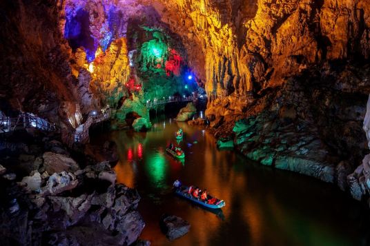 廣西平果通天河景區(qū)又稱“敢沫巖”、“紅軍巖”,是一個溶洞暗河型景區(qū),位于平果市黎明鄉(xiāng)208省道旁,地處平果平治河巖溶自治區(qū)級地質(zhì)公園核心。通天河景區(qū)于2013年被評為國家AAAA景區(qū)。景區(qū)地理位置優(yōu)越,東距大化紅水河28千米,可連接大化七百弄等景點;北距巴馬縣63千米,208省道直達(dá),適合與巴馬連線旅游,可連接“東巴鳳”各景點;西可連接百色、德天瀑布、通靈大峽谷等景點;南距南寧190千米,可連接南寧、北海等景點。