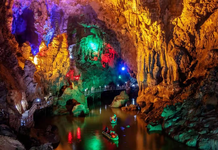 廣西平果通天河景區(qū)又稱“敢沫巖”、“紅軍巖”,是一個溶洞暗河型景區(qū),位于廣西百色市平果縣黎明鄉(xiāng)208省道旁。溶洞最大特點是面積大,總面積超過10萬平方米,其中“天上人間”面積3.3萬平方米;空氣好,6處洞口空氣通暢;空間高,最高的“九九洞天”99米;景點多,石筍、石柱、石幔、石瀑、石盾、石梯田、石鐘乳千姿百態(tài),鬼斧神工,20米以上石柱26余根;景觀奇,“神奇龍脊”長達(dá)60多米,鎮(zhèn)洞之寶“金銀雙塔”各高達(dá)30多米。通天河景區(qū)于2013年被評為國家AAAA景區(qū)。景區(qū)位于廣西西南部中心地帶,東距大化紅水河28公里,可連接大化七百弄等景點;北距巴馬縣63公里,208省道直達(dá),適合與巴馬連線旅游,可連接“東巴鳳”各景點;西可連接百色、德天瀑布、通靈大峽谷等景點;南距南寧190公里,可連接南寧、北海等景點。