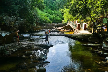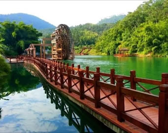 抵達(dá)景區(qū)后,乘木船游覽龍珠湖(自費(fèi),10元/人;30分鐘);到餐館吃中餐(1小時(shí));然后在竹林、亞熱帶風(fēng)情林漫步,吸氧,感受原始森林的清新氣息(20分鐘)到了石橋,游人可照相留影、觀山溪野魚(15分鐘)再走10分鐘,即可到達(dá)第一個(gè)山泉沐浴點(diǎn)仙女池,傳說(shuō)其水能使肌膚更加細(xì)膩嫩滑,最適合女性沐浴。(40分鐘)。