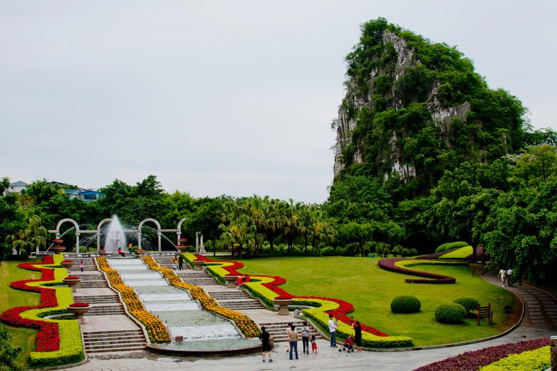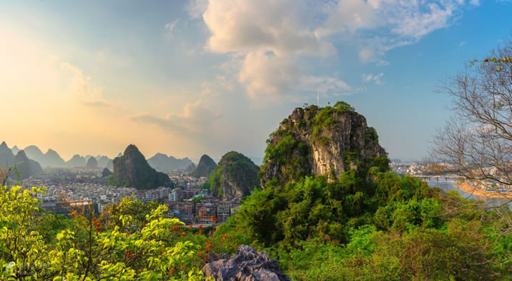 山系 疊彩區(qū)境內有堯山、疊彩山、伏波山、虞山等山;有伏龍洲、南洲、螞蝗洲等島嶼;有試劍石、木龍洞、韶音洞、風洞、仙鶴洞、瞻鶴洞、還珠洞等奇石異洞。