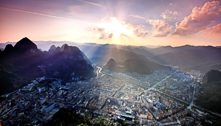 鳳山縣,隸屬于廣西壯族自治區(qū)河池市,地處云貴高原南部邊緣地帶,地勢由西北向東南傾斜,山多地少,典型的喀斯特巖溶地貌,自然旅游資源異常豐富,70%面積為大石山區(qū),30%面積為土山區(qū),耕地面積101726畝。屬亞熱帶季風(fēng)氣候區(qū),雨量充沛,光照充足,溫和濕潤,年平均氣溫20.1℃,全年降雨量1564.0毫米,無霜期362天。鳳山縣常住人口為169845人?偯娣e1729平方千米。