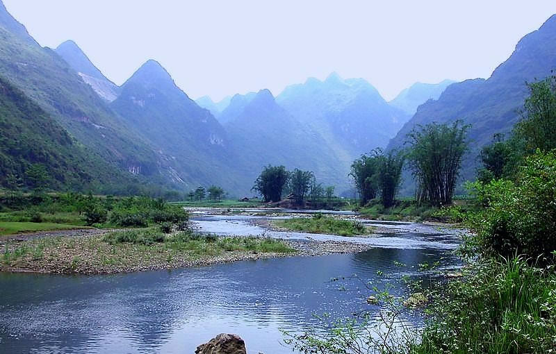 地形地貌 大化瑤族自治縣地處云貴高原余脈,都陽山脈自北向南跨過全境,地勢北高南低。北部海拔一般在500~800米,最高系板升─七百弄山區(qū),海拔一般在900~1000米,最高山峰七百弄鄉(xiāng)的弄耳山,主峰海拔1108米。南部海拔一般在150~300米。縣域地貌按成因分類有巖溶(喀斯特)地貌、剝蝕侵蝕低山丘陵地貌、河谷地貌三種類型,其中以巖溶地貌為主,境內(nèi)峰巒疊嶂,洼地密布,號稱“千山萬弄”,僅七百弄鄉(xiāng)就有大小弄場1300多個,而有人煙的僅324個。