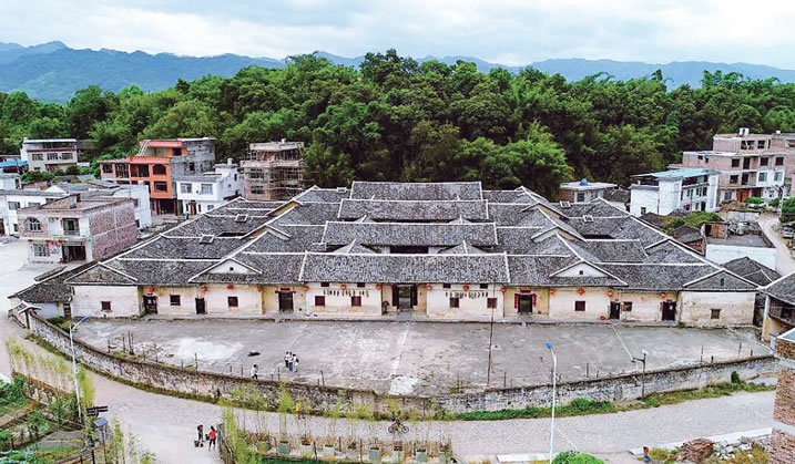 賀州江氏客家圍屋,位于廣西賀州市八步區(qū)蓮塘鎮(zhèn)仁沖村,建于清代,已有200多年歷史。圍屋建筑為方形對稱結(jié)構(gòu),四周有3米高墻與外界相隔,屋宇、廳堂、房井布局合理,廳與廊相通,廊與房相接,錯落有致。屋檐、回廊、屏風(fēng)、梁柱等設(shè)計精致,有典型的客家建筑文化藝術(shù)風(fēng)格。 2019年,入選第八批全國重點(diǎn)文物保護(hù)單位。