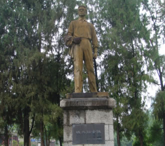 錢興烈士塑像矗立在黃姚鎮(zhèn)寶珠觀中共廣西省工委紀念館前的小廣場上,塑像高3米,玻璃鋼塑造。塑像基座高2.6米,寬1.5米,臺基邊長1.1米,臺下階梯三級總高0.5米,為花崗巖結構。這一尊塑像是為了紀念中共廣西省第一任工委書記錢興于1986年興建的。