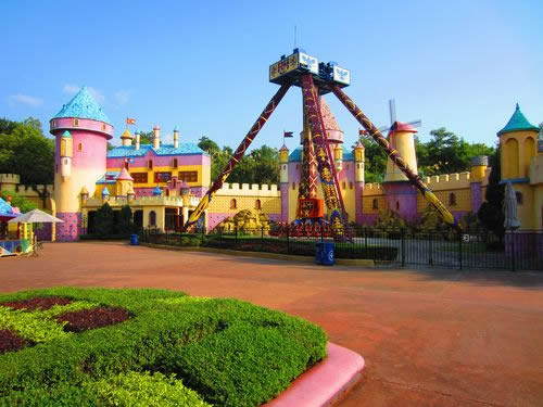 夢(mèng)幻世界區(qū)是以西洋童話中的夢(mèng)幻仙境為主題。這里的建筑多呈不規(guī)則形狀,將一些娛樂、服務(wù)設(shè)施裝飾成大樹、蘑菇等奇特造型。該區(qū)主要的游樂設(shè)施有: