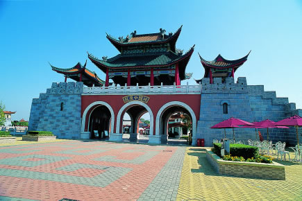 該區(qū)的建筑風(fēng)格充滿了中國古代特色,有長城式的城墻及亭臺(tái)樓閣等建筑造型。中國城內(nèi)主要的游樂設(shè)施有: