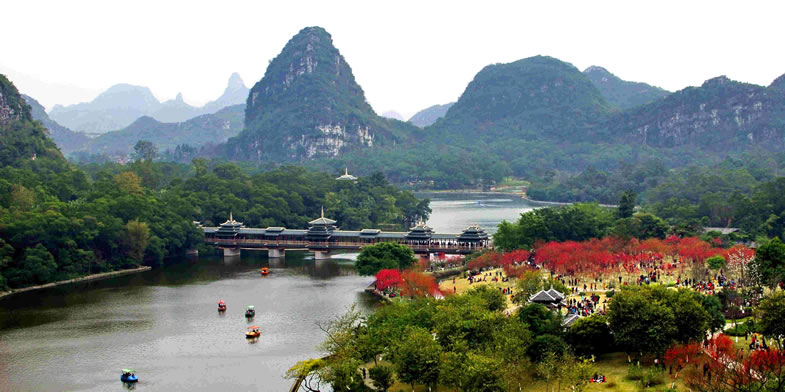 廣西位于我國的南部邊疆,緯度較低,屬亞熱帶氣候,地形略呈現(xiàn)盆地狀,全年多雨,氣候溫暖而濕潤,一年四季都很適合旅游。